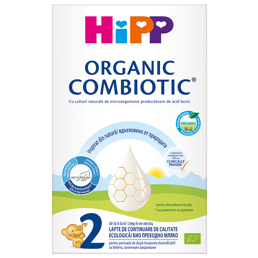 Acest produs trebuie utilizat numai la indicaţia medicului sau a asistentului medical și după instruirea mamei privind utilizarea lui. HiPP 2 Combiotic a fost conceput pentru a acoperi nevoile nutriționale ale sugarilor după vârsta de 6 luni, sprijinindu-le dezvoltarea sănătoasă.